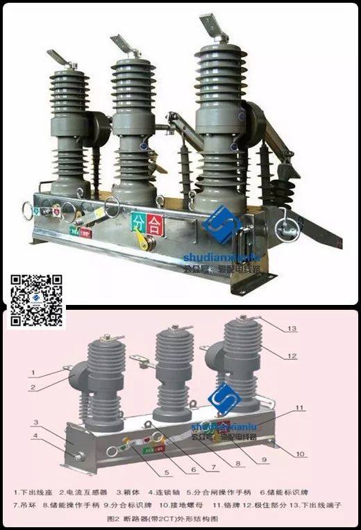 ▲ 柱上真空断路器(真空灭弧,真空绝缘)