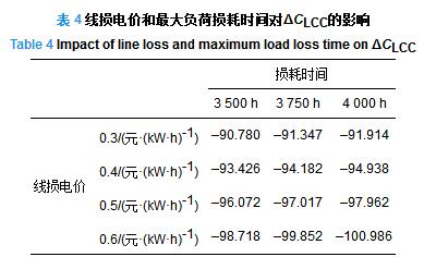 表 4 线损电价和最大负荷损耗时间对ΔCLCC的影响