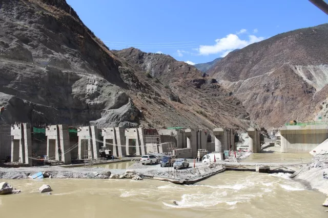 2015年1月4日,第一个枯水期施工开始,当年左岸导流明渠完成通水过流,右岸基坑开挖完成。2015年5月11日,第一仓混凝土开始浇筑。2018年5月11日,首部枢纽工程最后一仓混凝土浇筑完成。此间恰好历时整整三年,在这三年里,三分局新藏水电站项目克服了交通不便、物资匮乏断供、洪水、停电等重重困难。