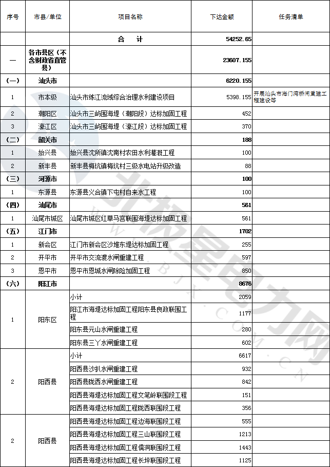 近日,广东省水利厅公布关于2018年省级水利建设与改革发展专项资金54252.65万元安排计划的公示,包括水电站升级改造等水利水电项目工程。全文如下: